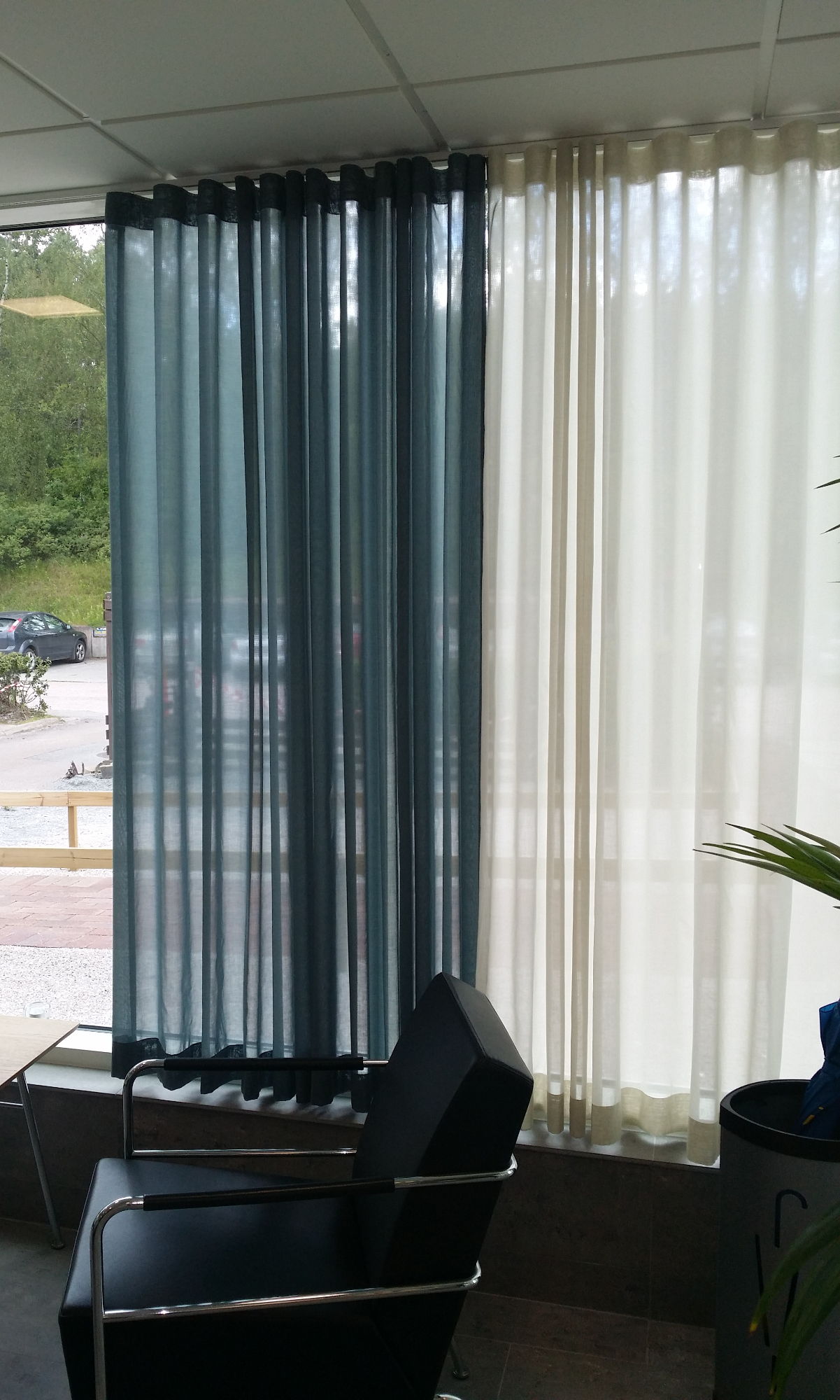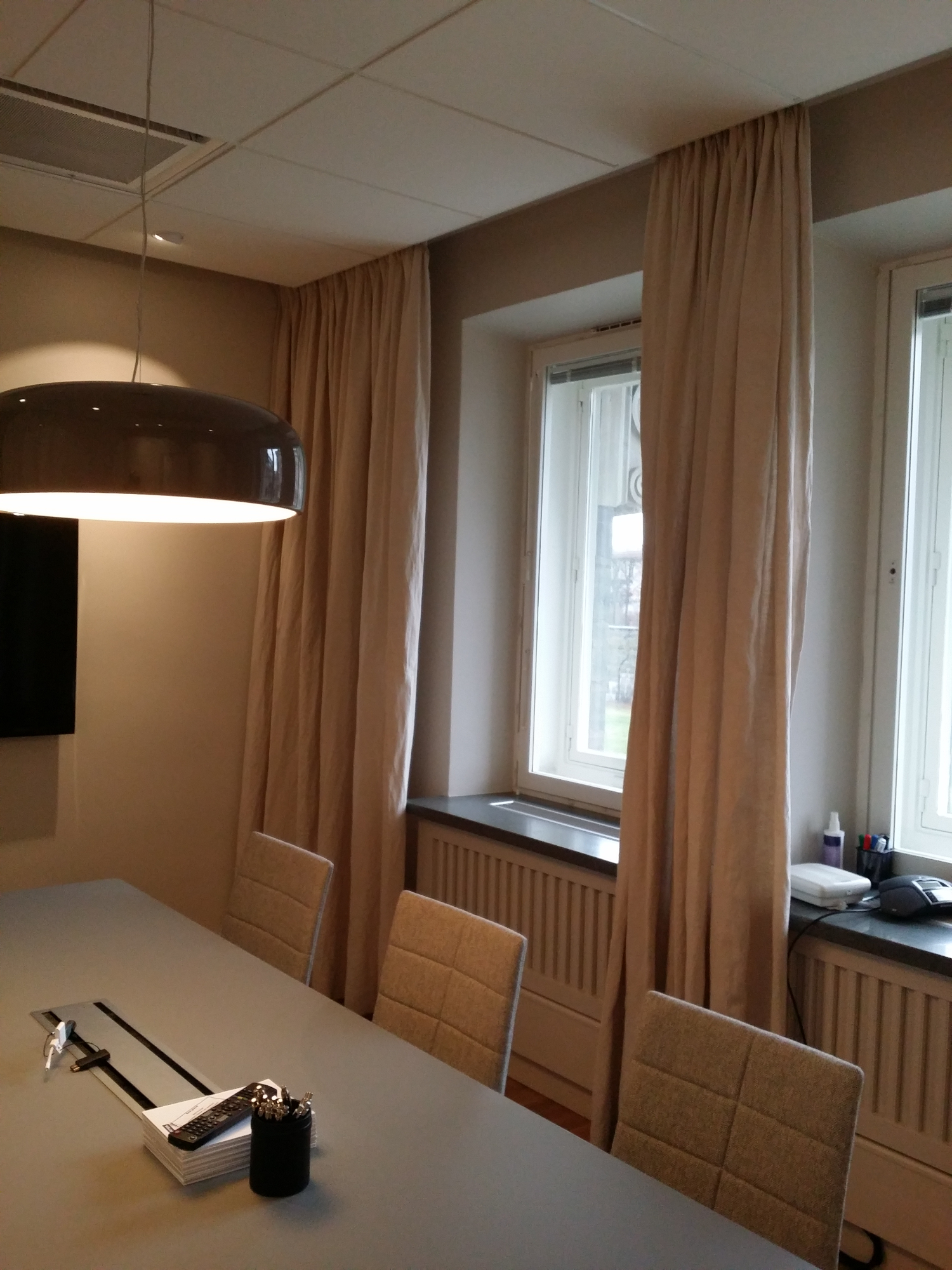 Alla typer av gardinsömnad utförs för både privat- och offentlig miljö. Måttanpassat och utformat efter dina önskemål. Måttagning, montage och upphängning.